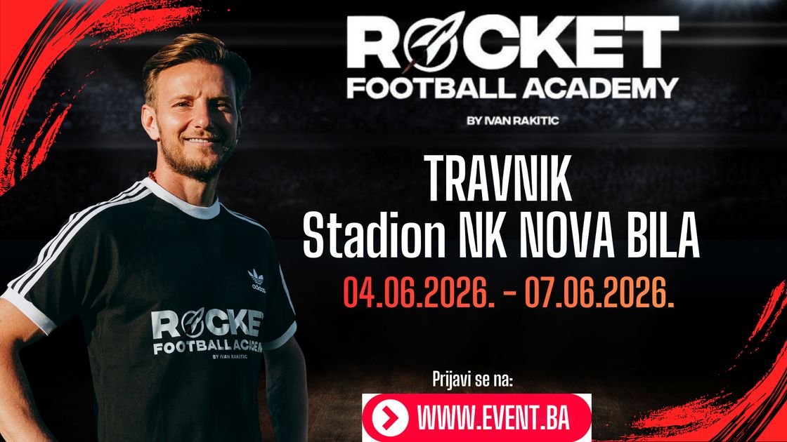 Rocket Football Academy by Ivan Rakitić je nogometna akademija/kamp za djecu i mlade uzrasta od 6 do 15 godina, koja se održava od 04.06.2026. do 07.06.2026. na Stadionu NK Nova Bila u Travniku. Program je osmišljen kao intenzivno nogometno iskustvo pod vodstvom Ivana Rakitića i profesionalnih trenera, s fokusom na razvoj tehnike, igre i individualni napredak svakog polaznika.